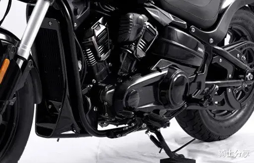 该车型所搭载的V2引擎实际排量249cc,最大功率20.7KW,并采用了AMT自动变速箱,因为在它的左侧边盖我们能够很清晰的看到一个凸起造型,这其实就是电动换挡机构所在的位置。所以这款车无疑是闪250自动版。